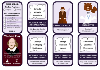 In this cooperative card game, you and your friends each take on the role of an archetypal Shakespearean character. Decide whether your play is a comedy or a tragedy, then choose a theme and a starting location. Draw from the Trope Deck, and together, write your own Shakespearean play!